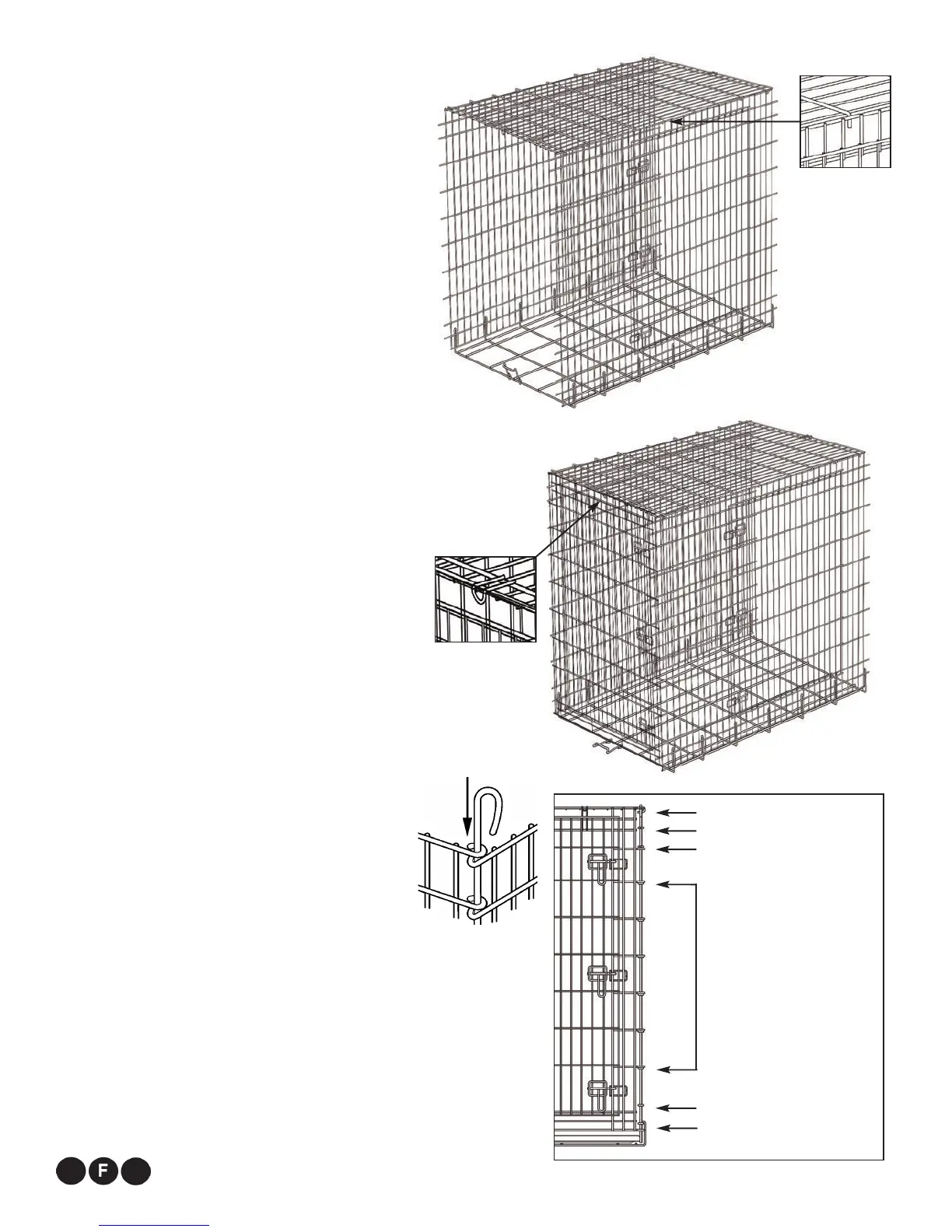 crochets du panneau supérieur aux fils