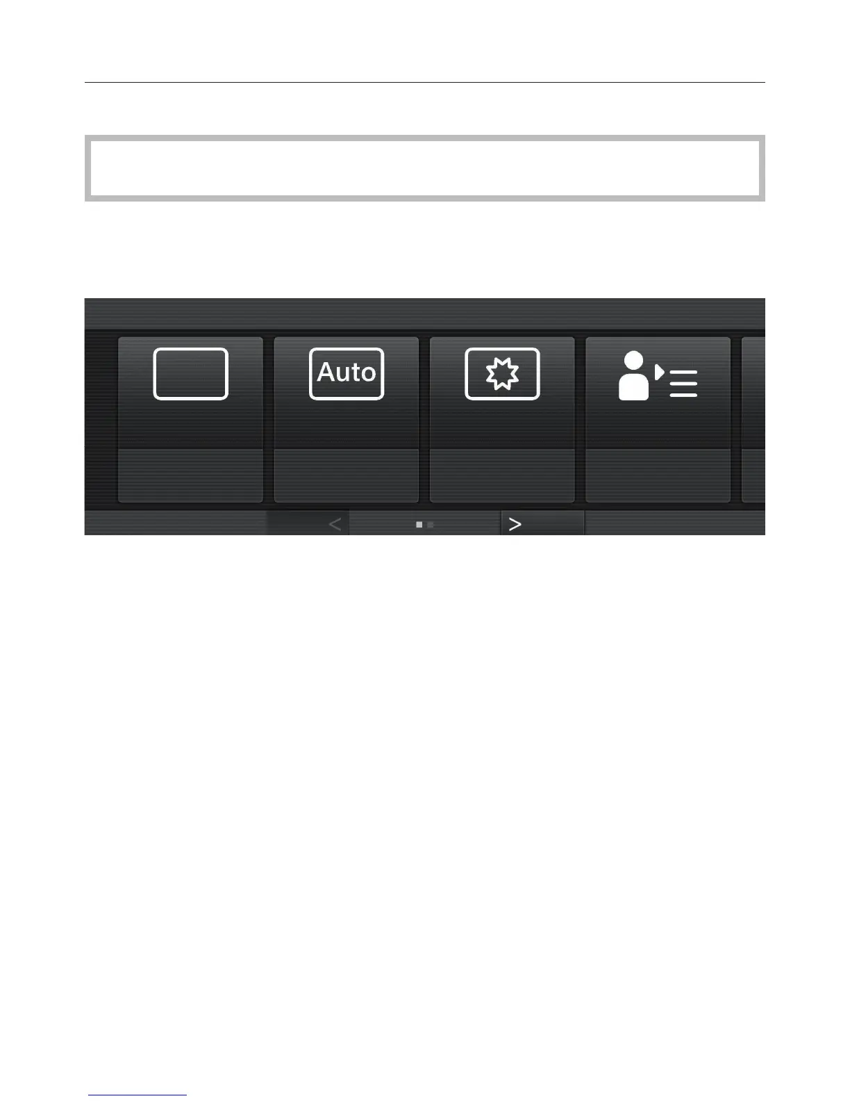 The middle row shows the current menu and options. You can scroll to the right or