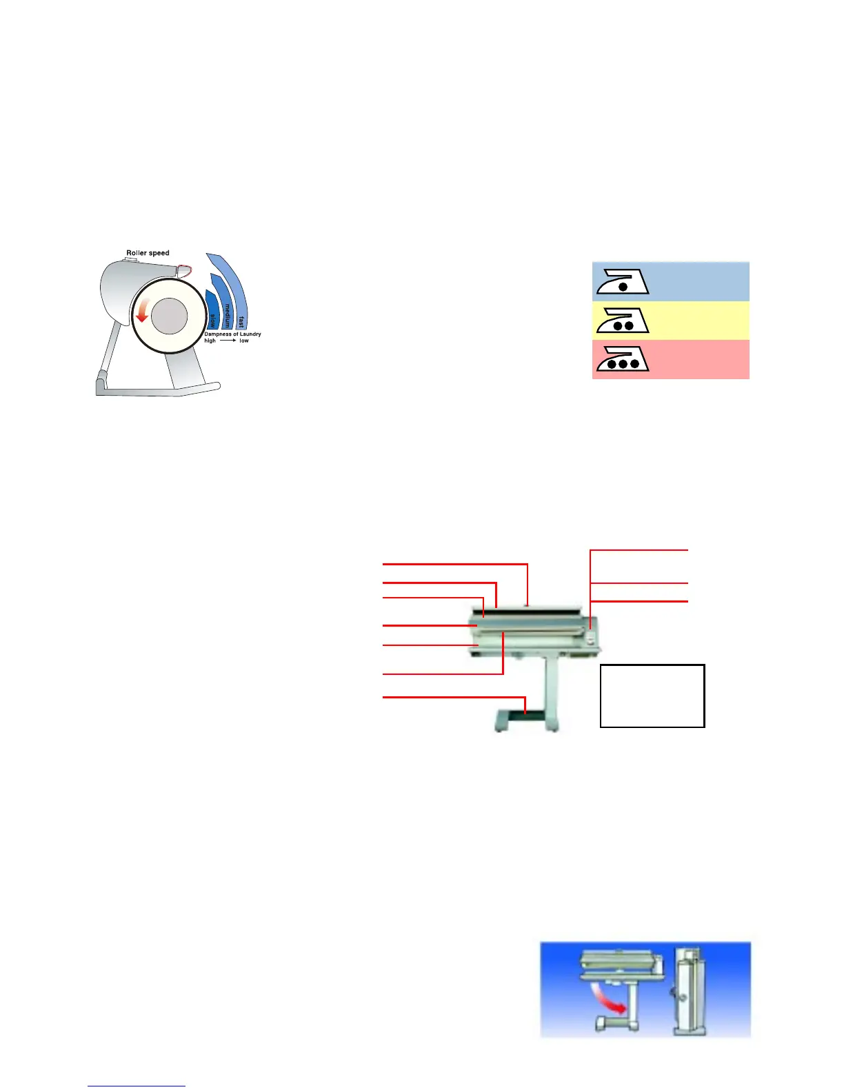 The ironing result depends on temperature, roller speed of the iron as well as dampness of laundry.