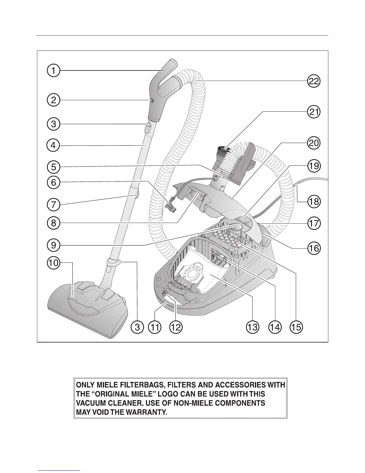 Miele Classic C1 - Guide to the Vacuum Cleaner; Component Diagram