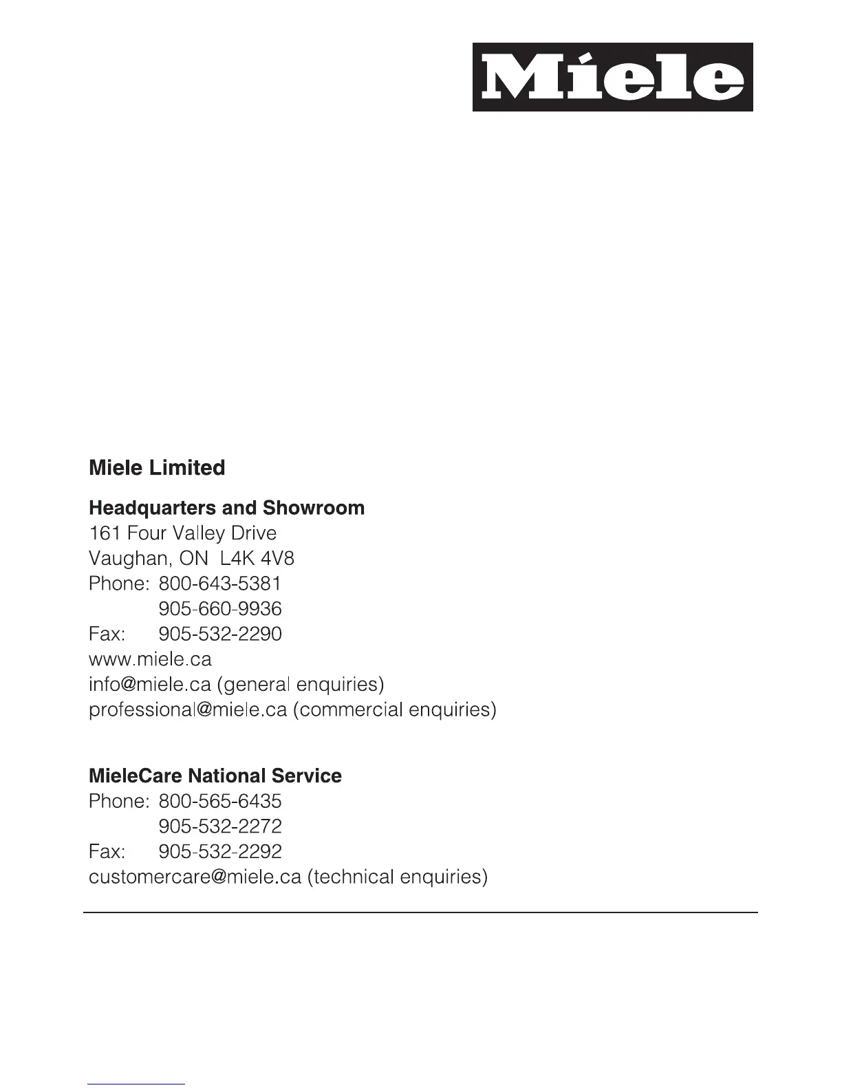 For the most updated manual see the Miele web site.