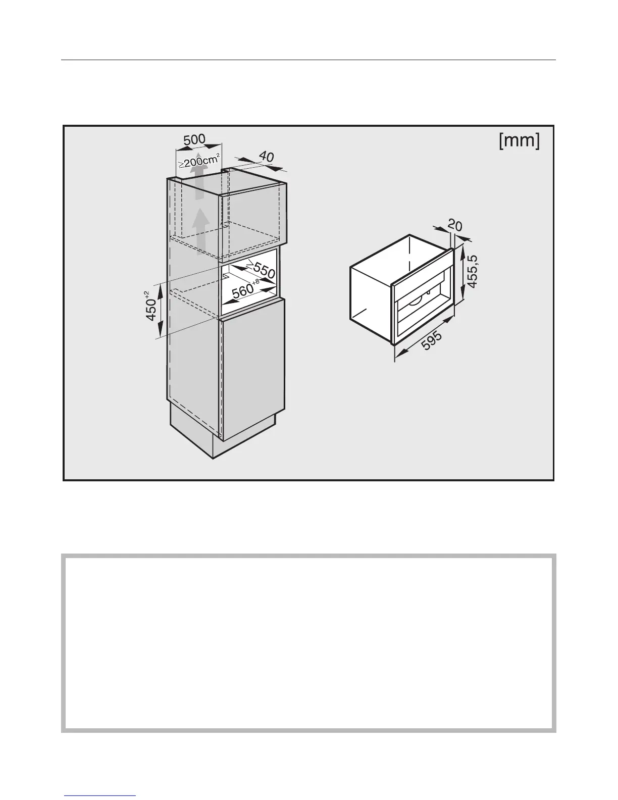 is to be built in above another appliance, there must be a full-width, closed shelf