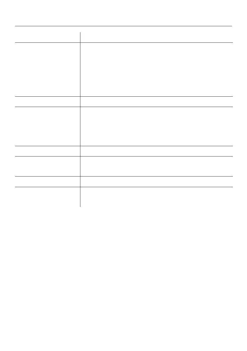 Menu item Available settings