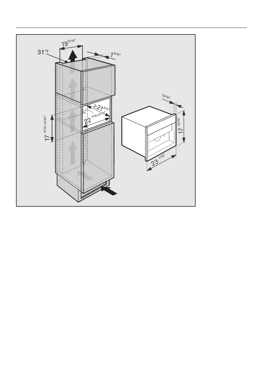 to be built in above another appliance, there must be a full-width, closed shelf be-