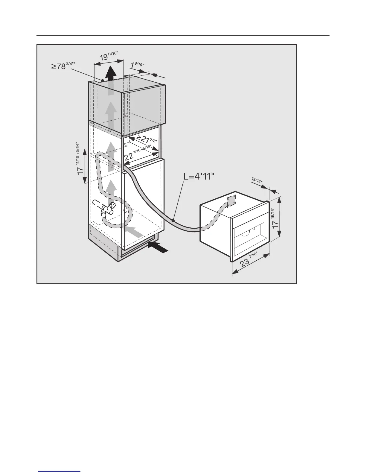 to be built in above another appliance, there must be a full-width, closed shelf be-