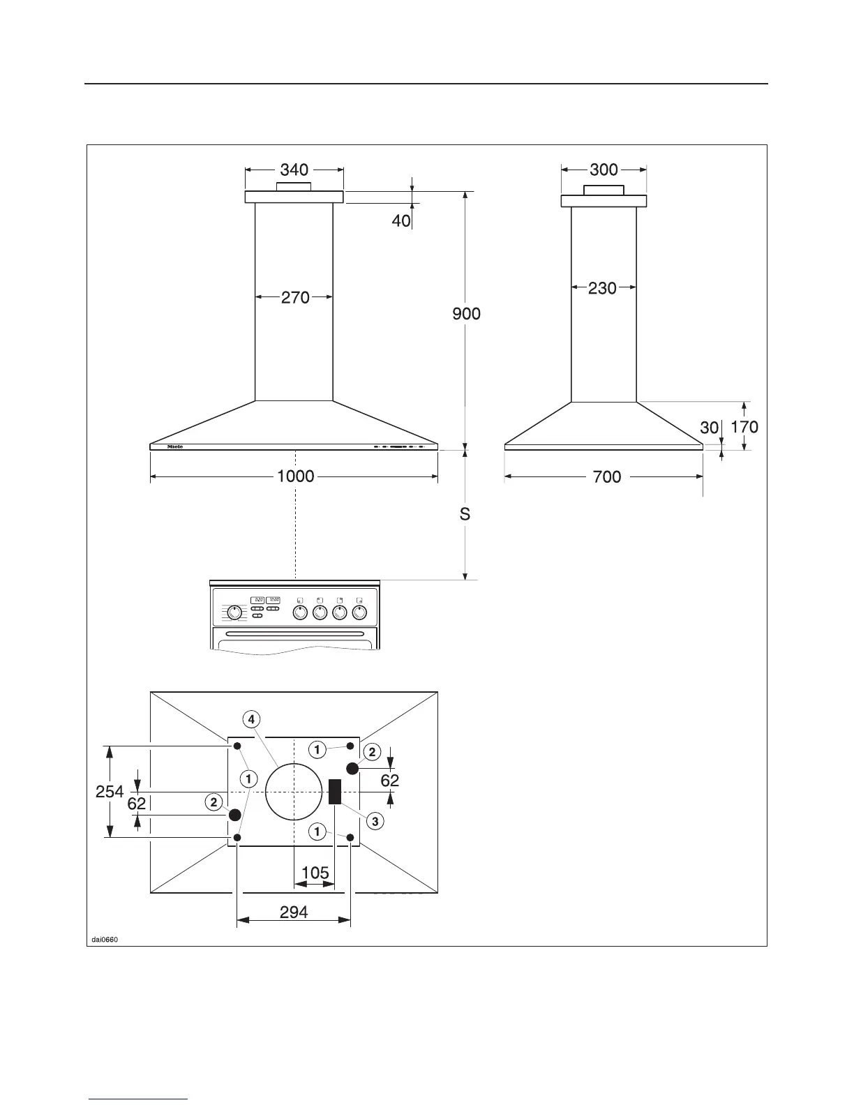 c Cut-out for feeding connection cable through to an external fan, min. 65 x 30 mm