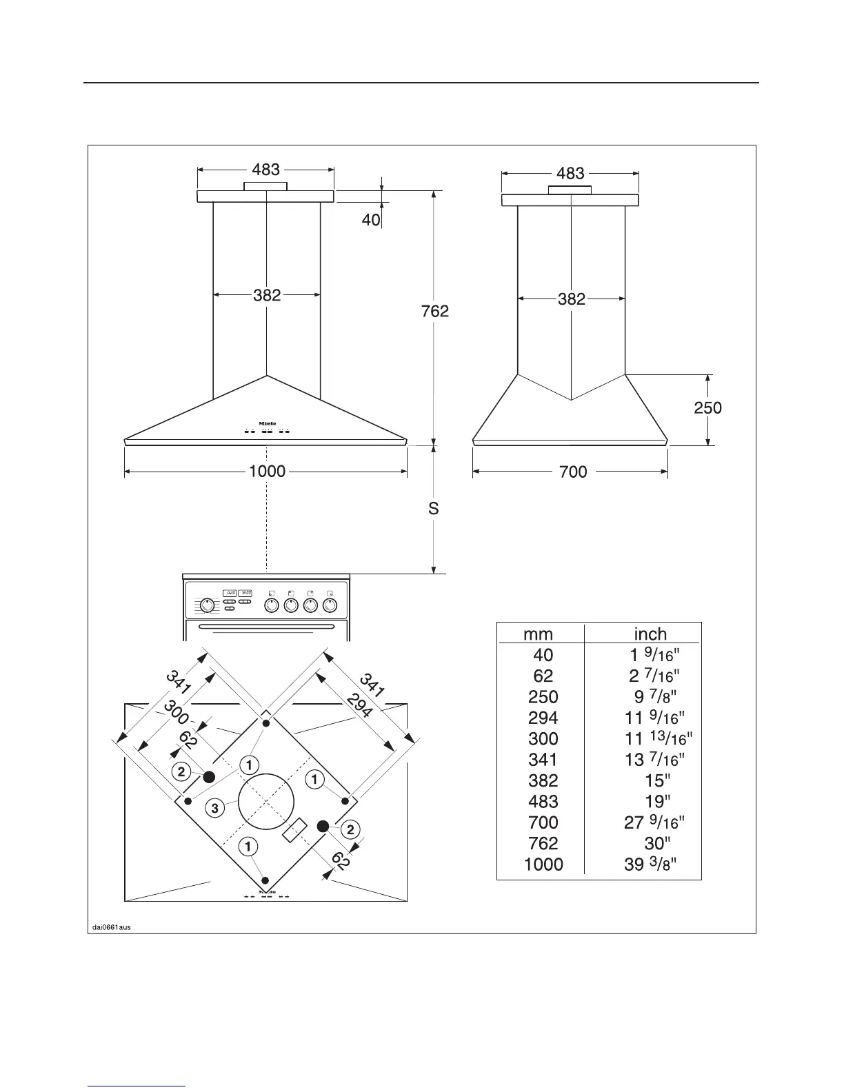 Miele DA 210-3 - Appliance Dimensions