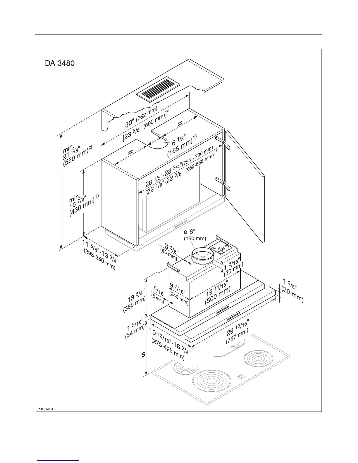 * The hood can also be installed in a 23