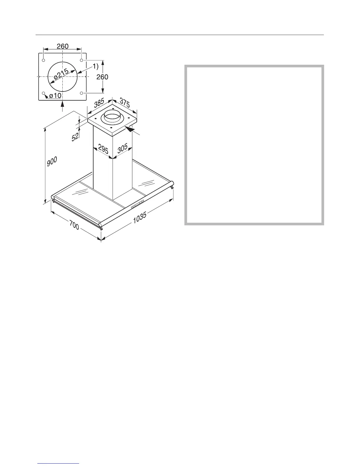 and the bottom of the cooker hood