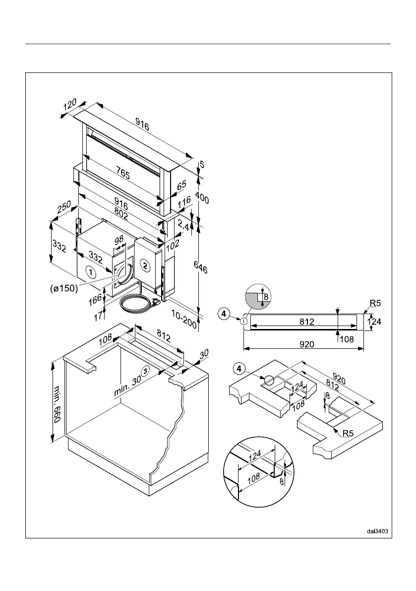 Miele DA 6890 - Appliance Dimensions and Cut-out
