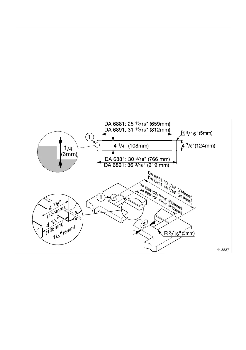 a) Overhang of the cooktop