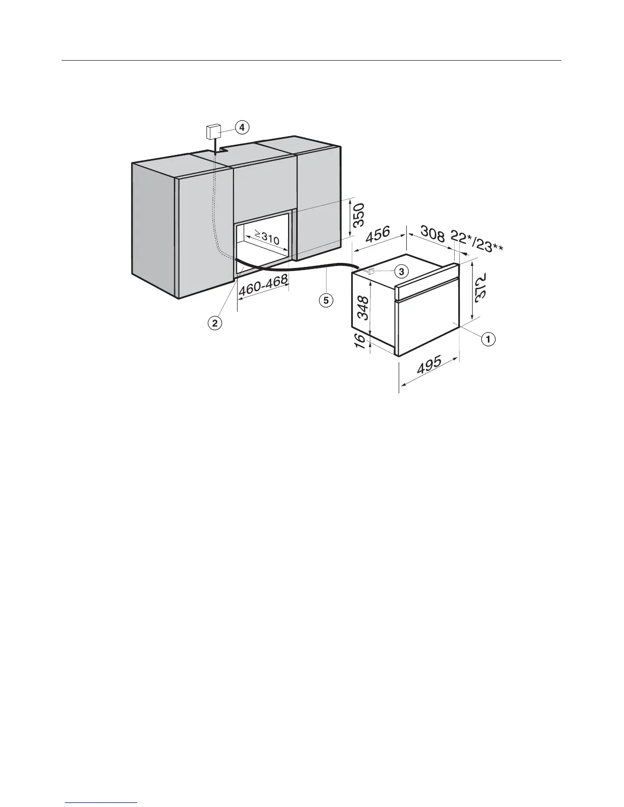 d Recommended position for electrical socket.