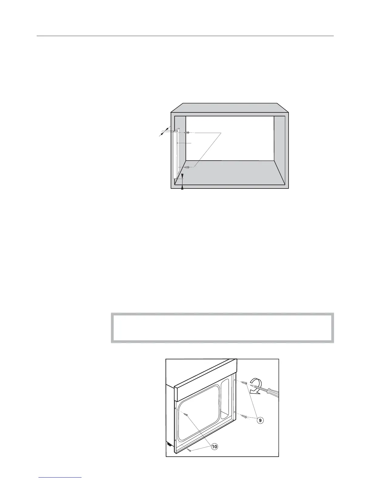 ^ Secure the appliance with the two wood screws i