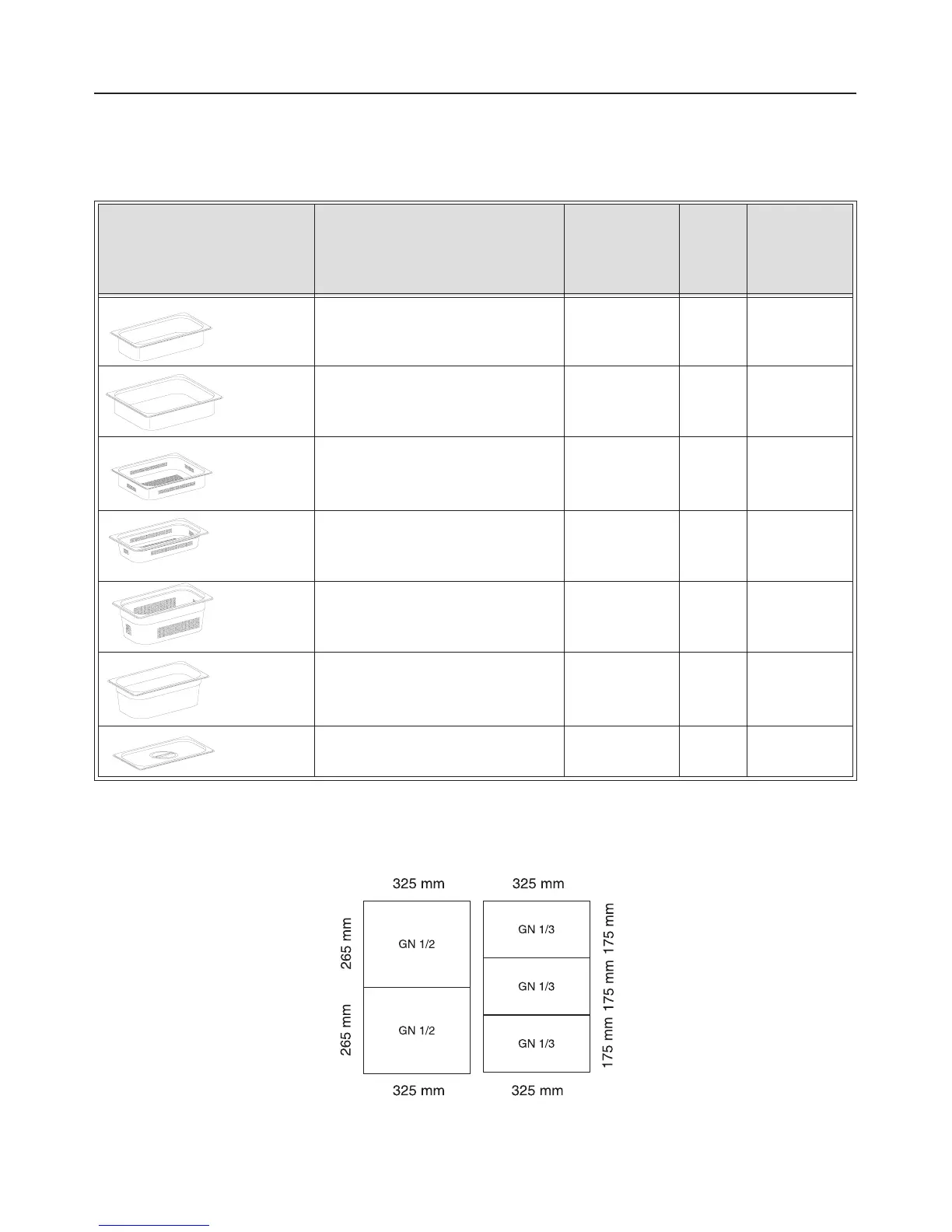* Gastro-Norm sizes (Example GN 1/3)