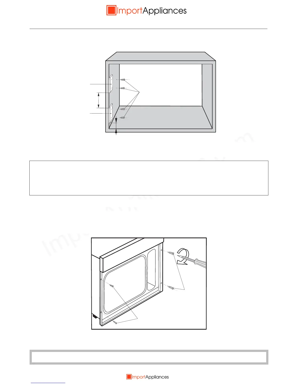 Secure the appliance left and right using the wood screws supplied (3.5mm