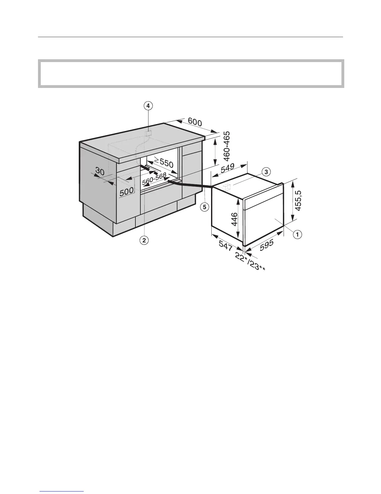 Recommended position for electrical socket. Important: Do not position behind