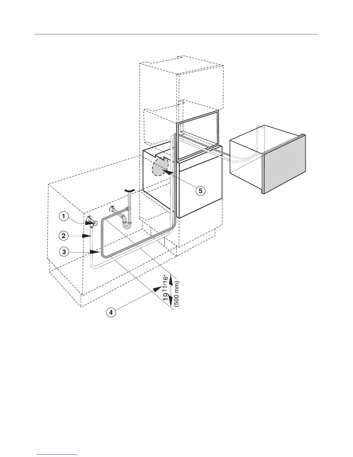 d The ascending end of the drain hose to the inlet of the drain trap must not be