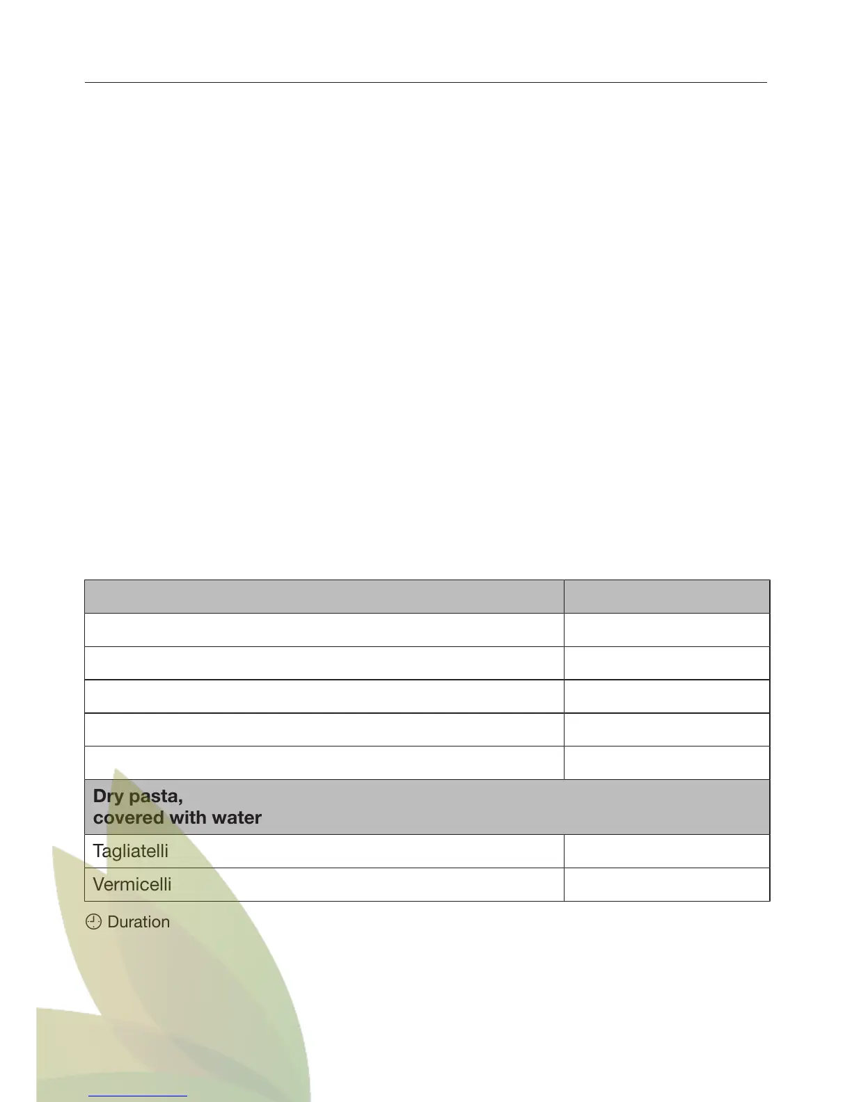 Automatic programmes|Pasta||Steam cooking