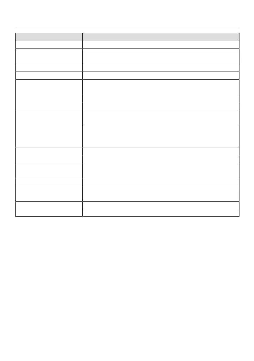 Menu option Available settings