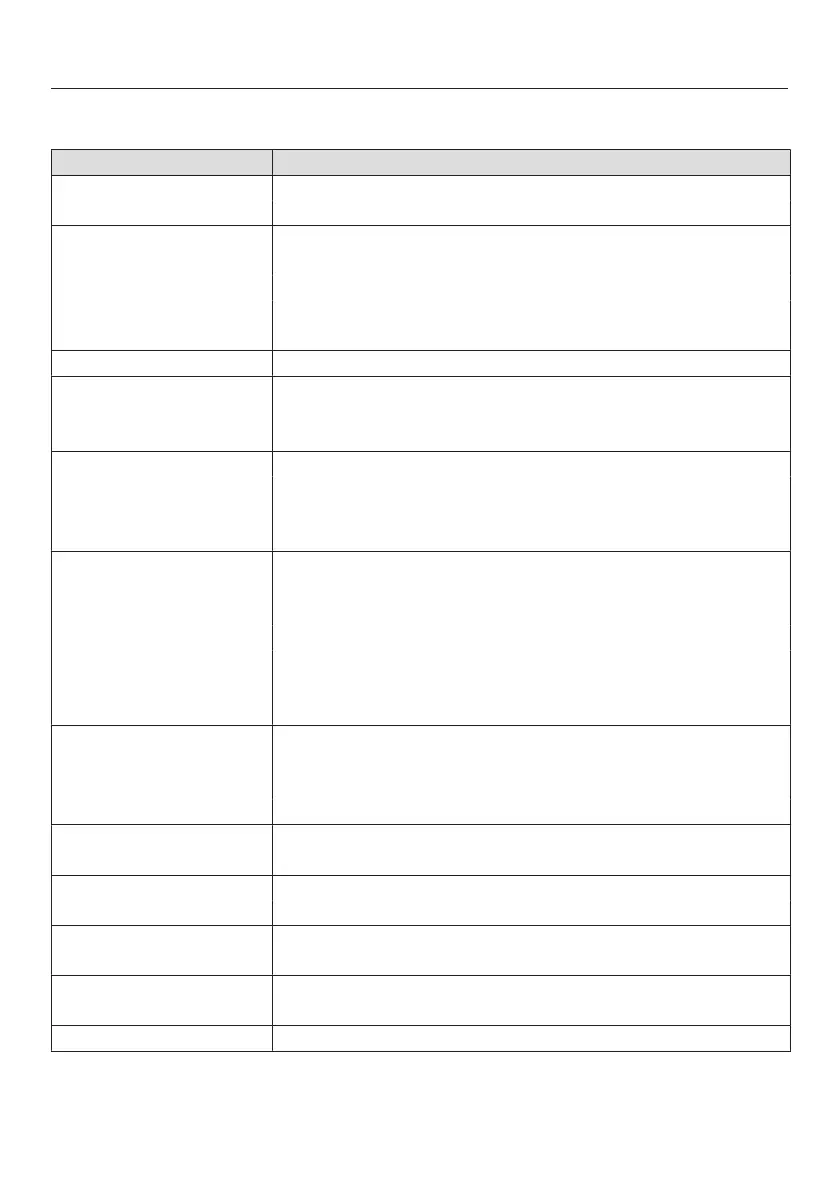 Menu option Available settings