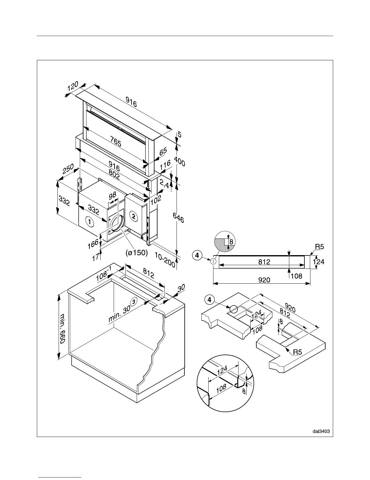 Miele downdraft extractor - Appliance dimensions