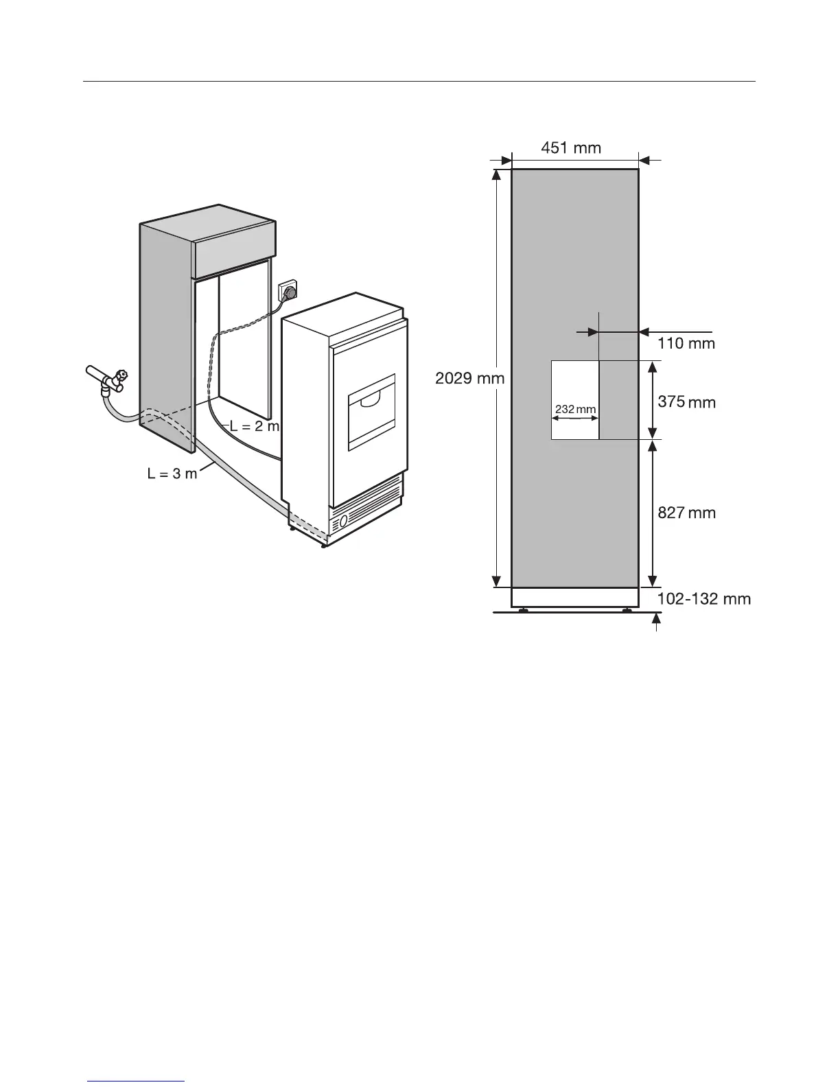 Miele Freezer - Laying the Electrical Cabling and the Pipework for the Mains Water Supply; Door Front Dimensions