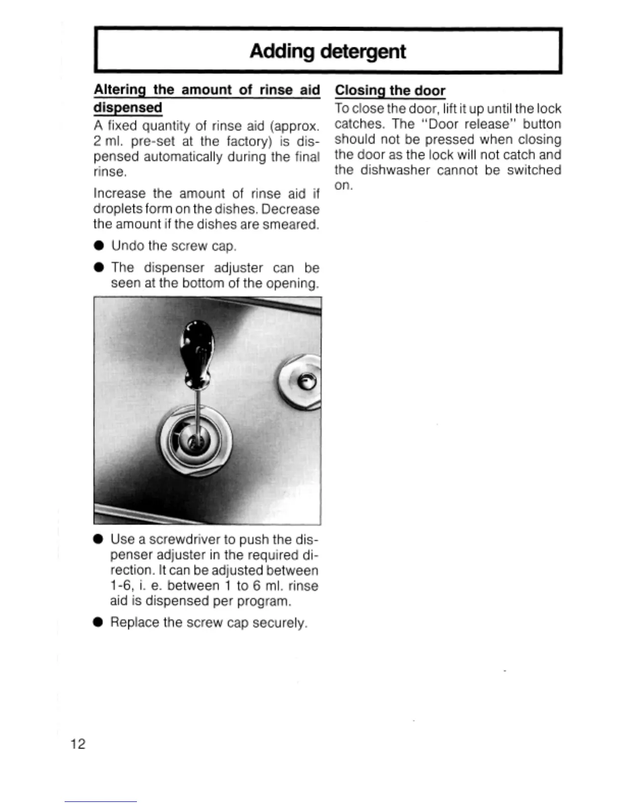 Miele G 522 U - Altering the Amount of Rinse Aid Dispensed; Closing the Door