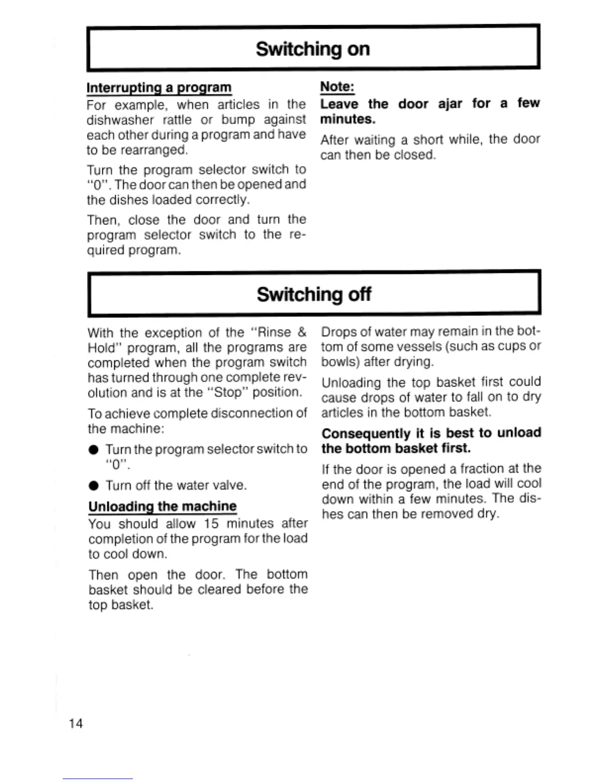 Miele G 522 U - Switching off; Interrupting a Program; Unloading the Machine