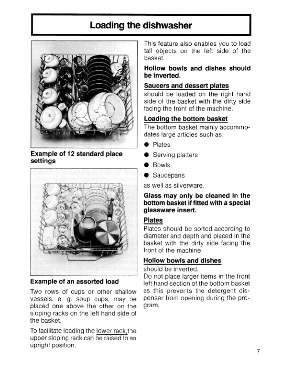 Miele G 522 U - Example of an Assorted Load; Saucers and Dessert Plates; Loading the Bottom Basket; Plates