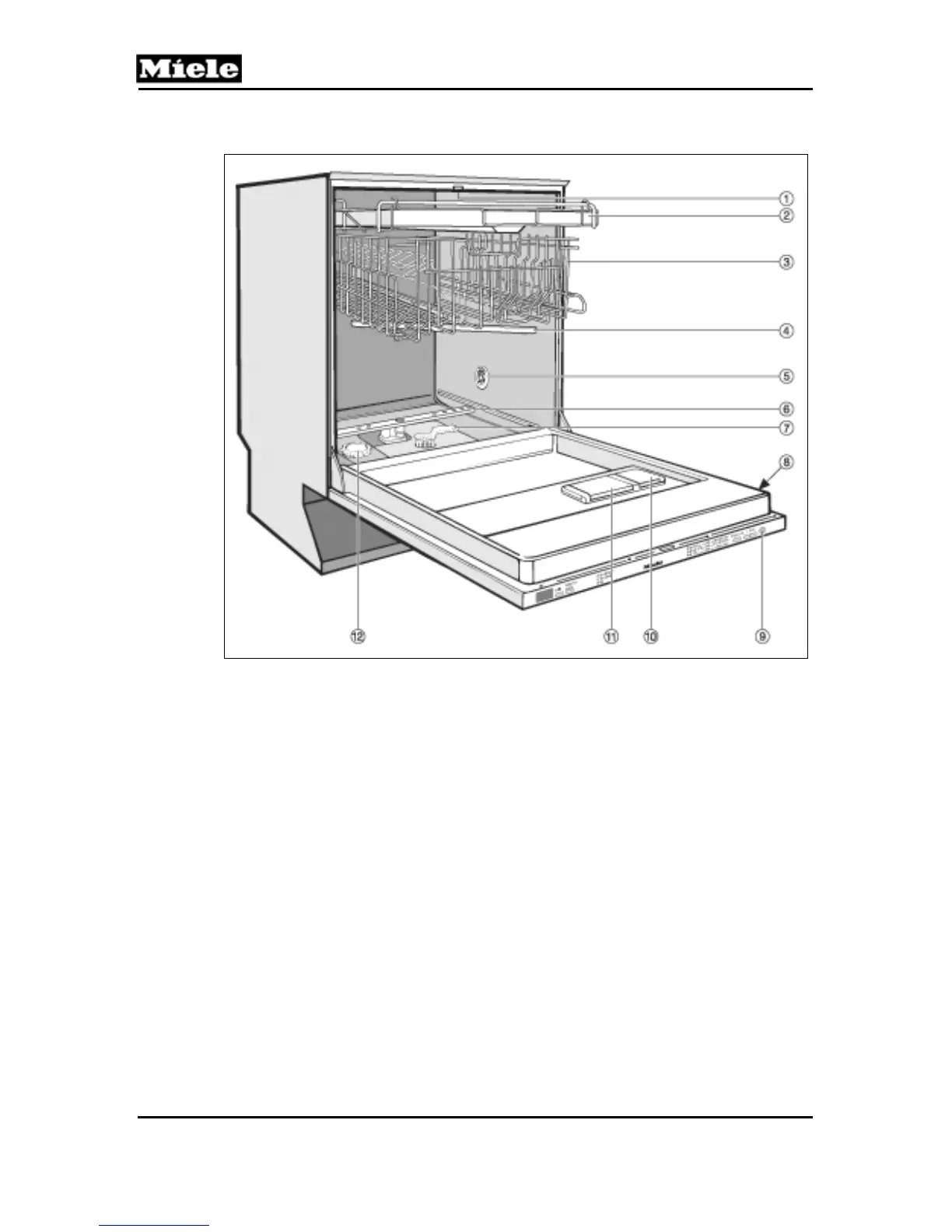 4 Middle spray arm 10 Rinse aid reservoir