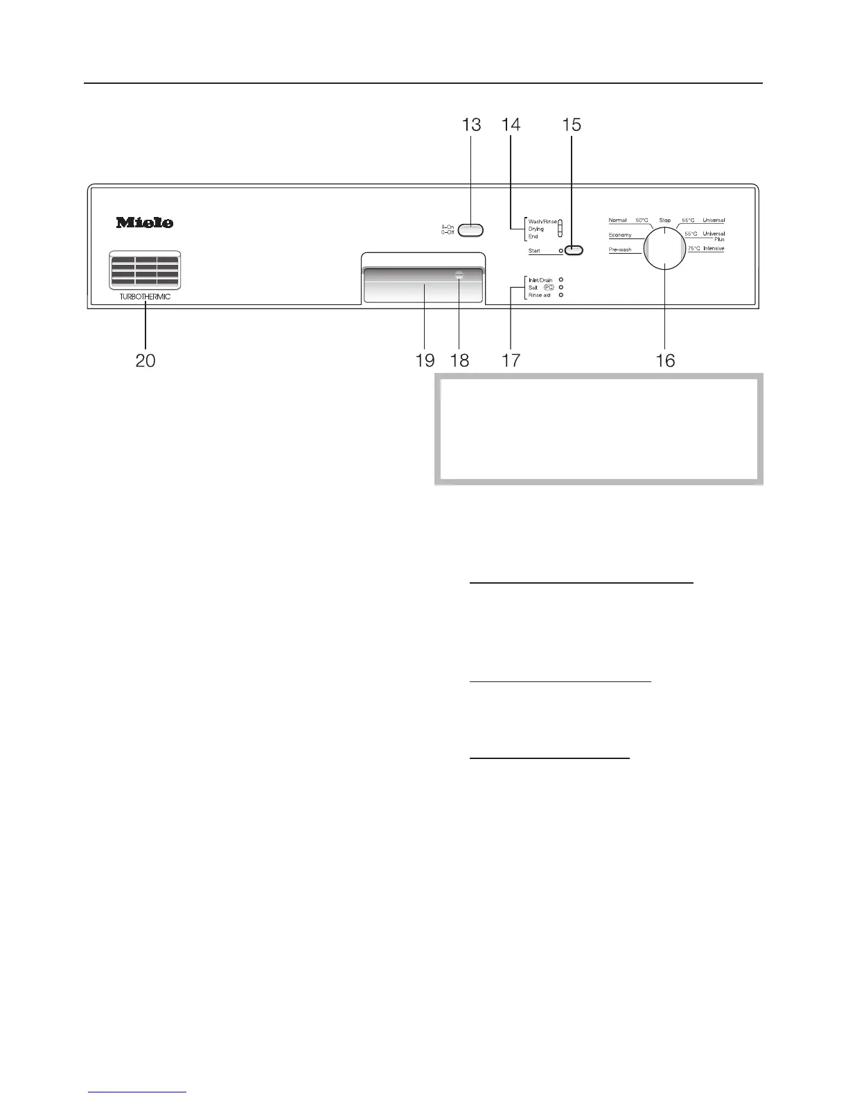"Start" (15) and "Wash/Rinse" (14)