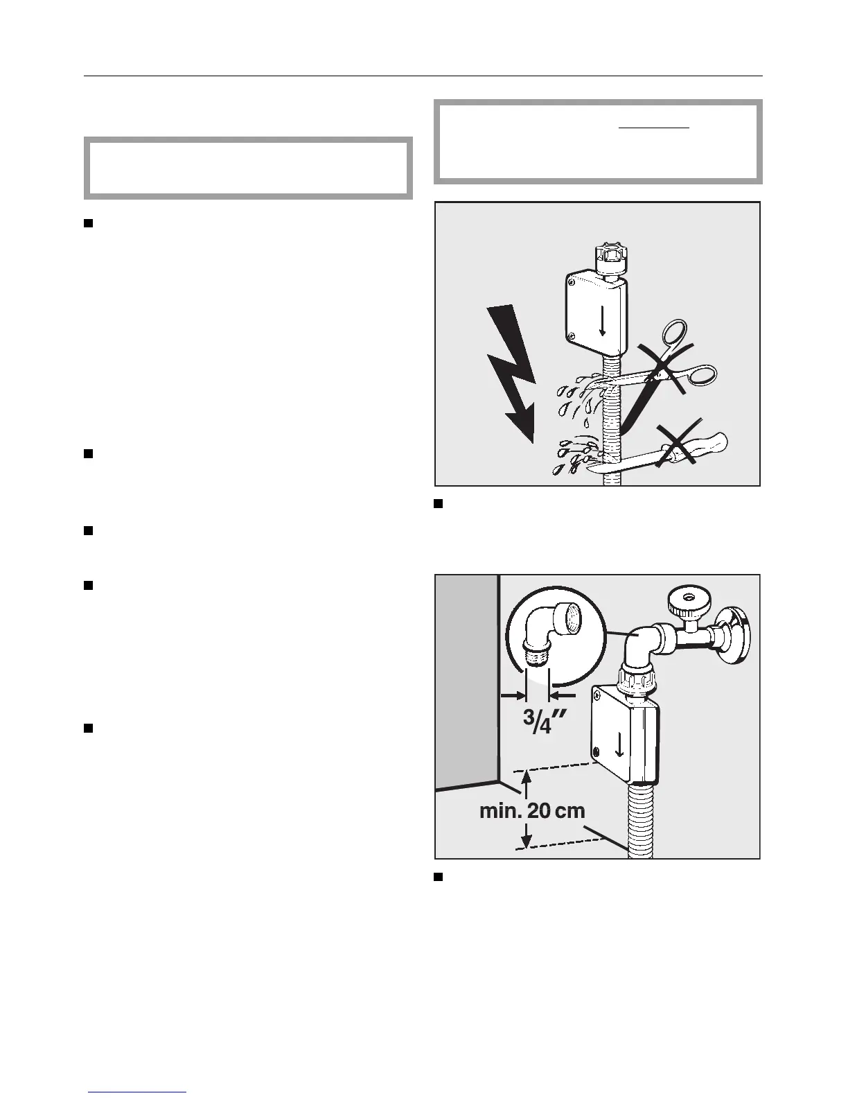 The water inlet hose must not be