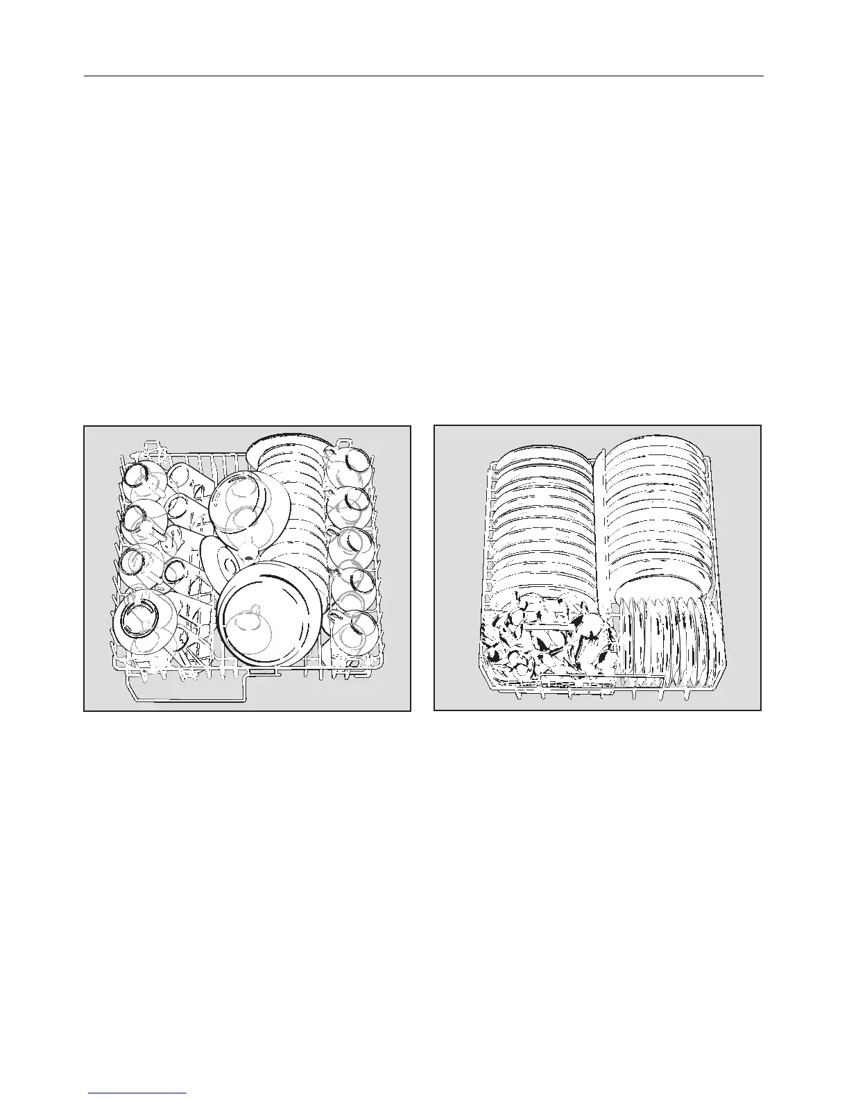 These illustrations show how 14 place settings can be loaded. For normal mixed