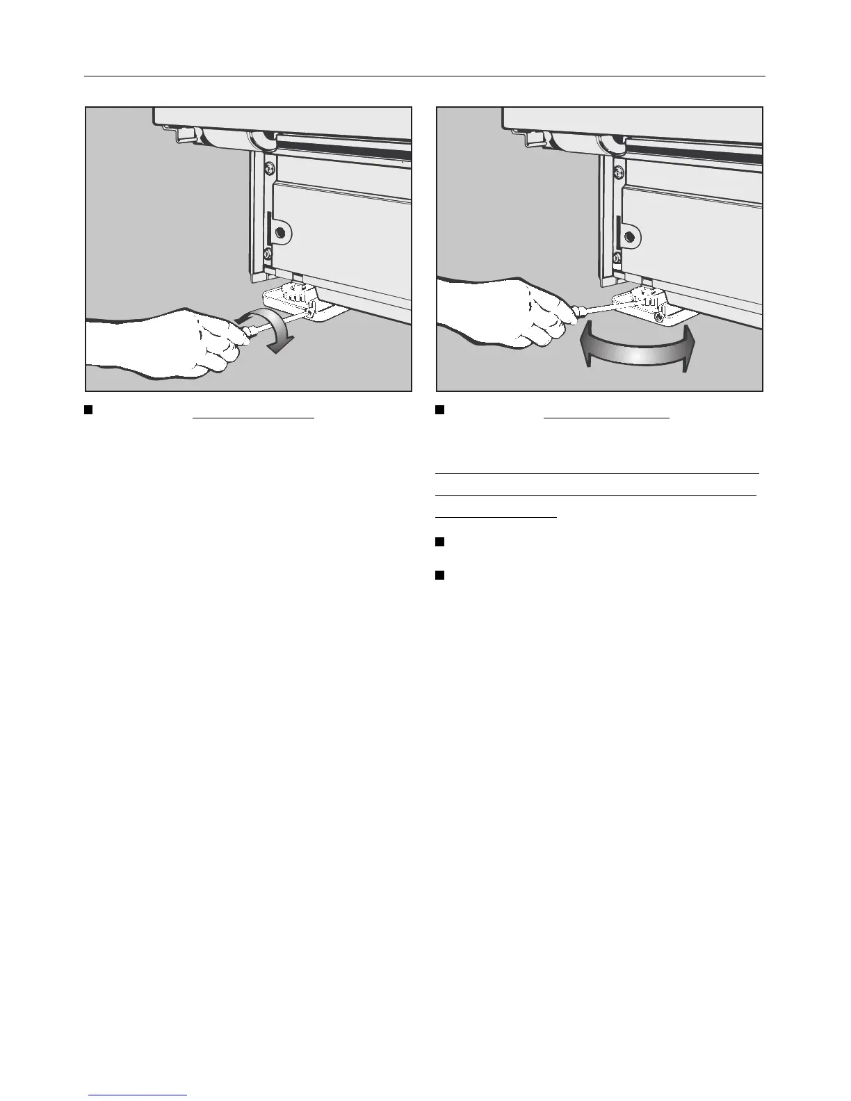 Adjust the front screw feet manually