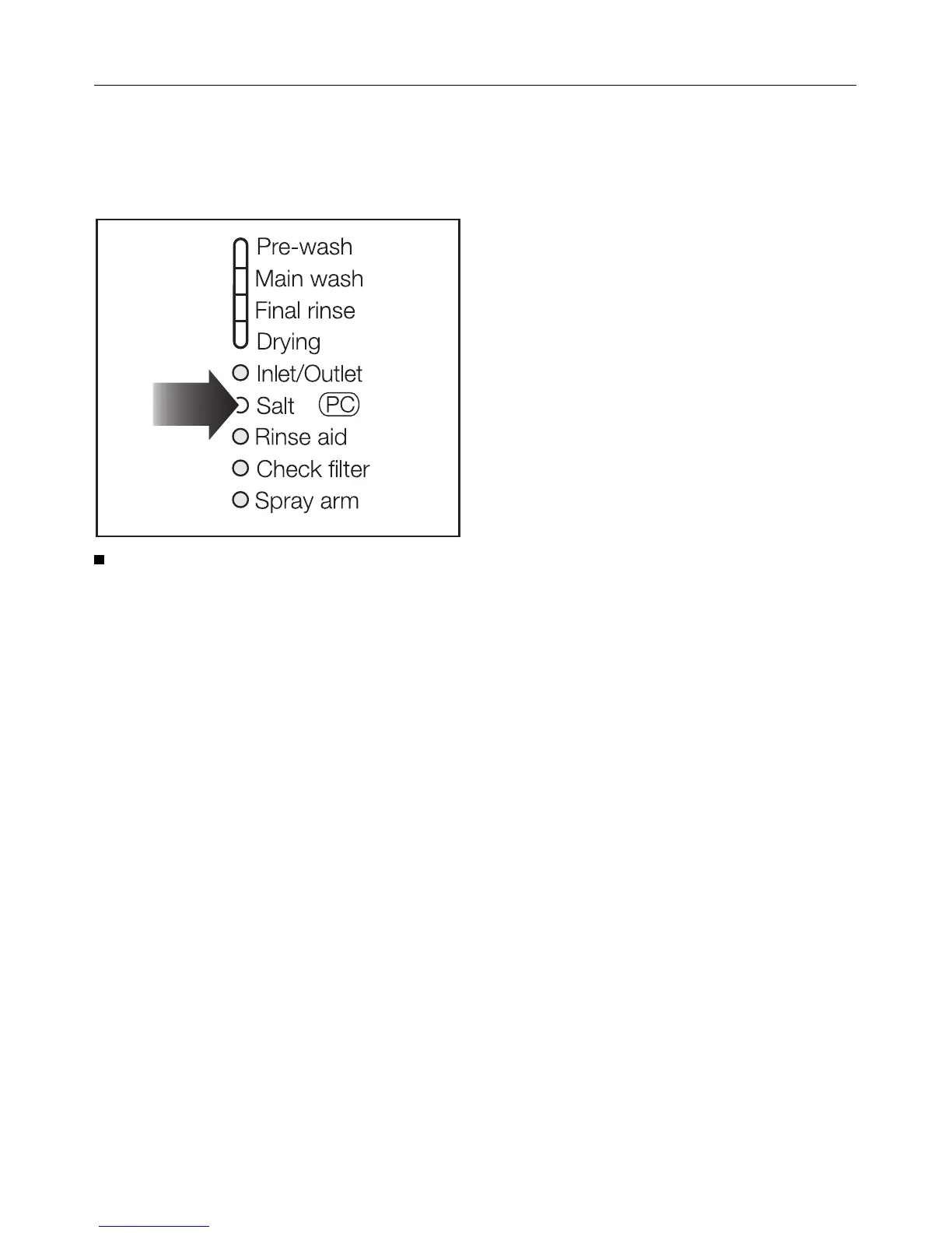 The salt indicator light comes on to not-