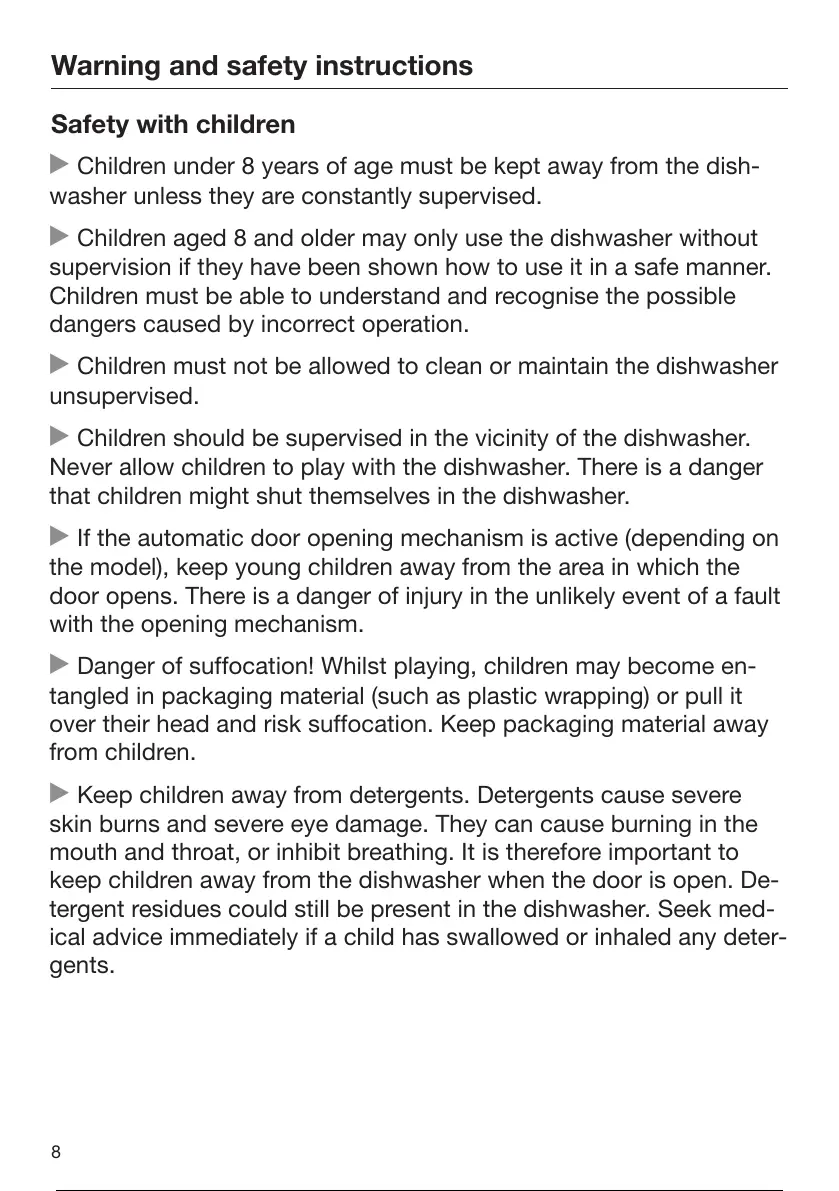 Children aged 8 and older may only use the dishwasher without