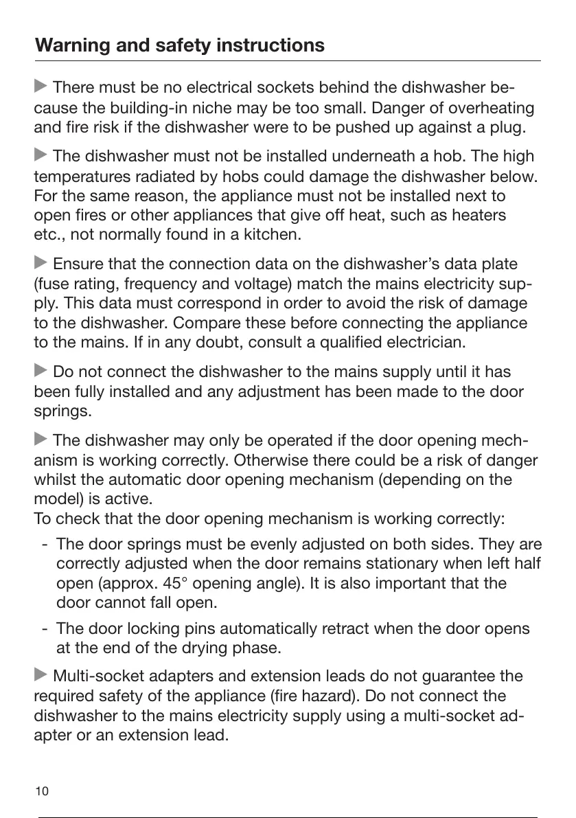 The dishwasher may only be operated if the door opening mech-