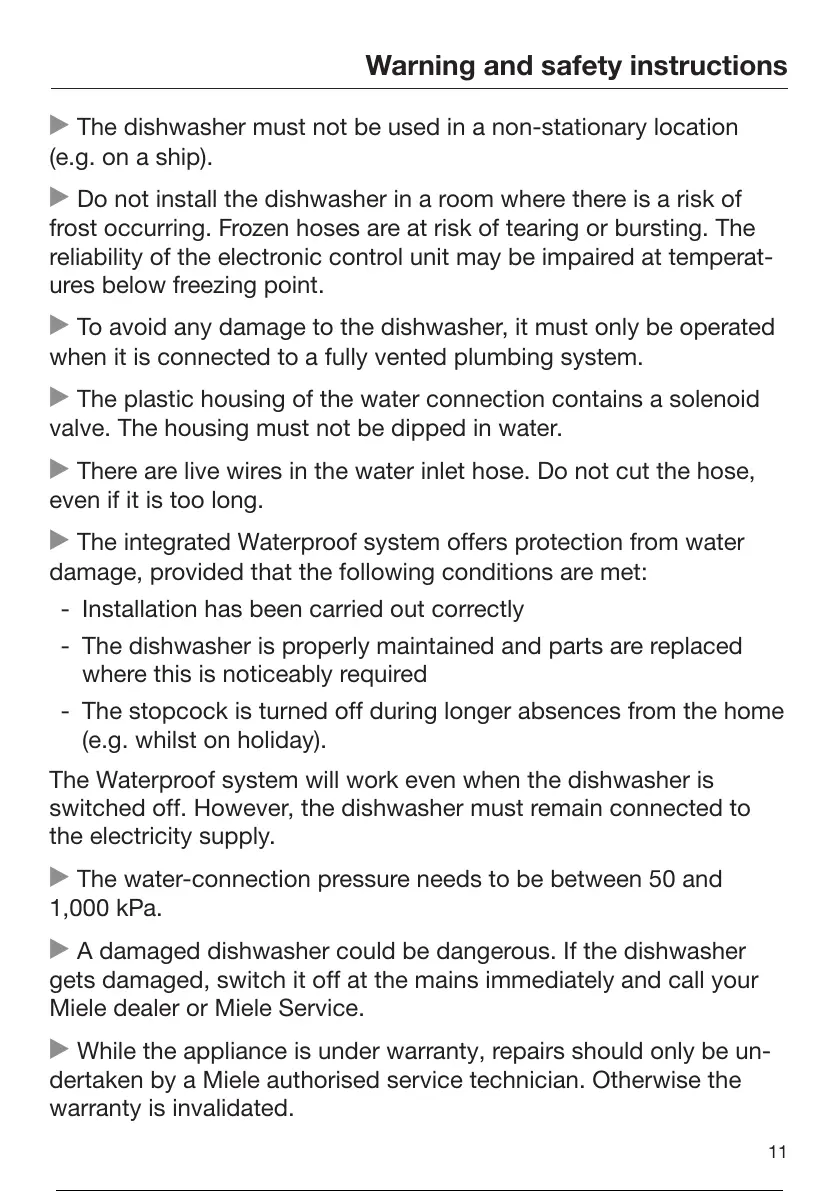 frost occurring. Frozen hoses are at risk of tearing or bursting. The