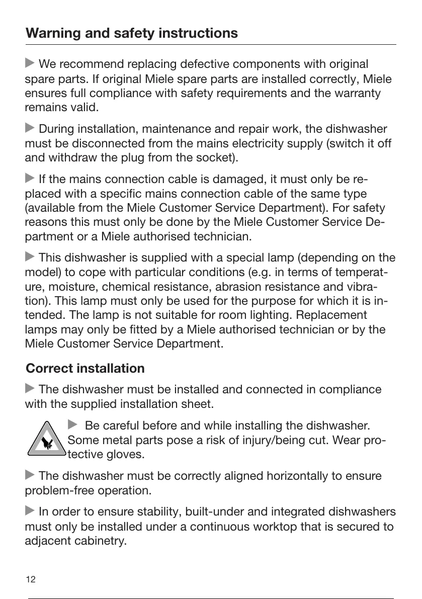spare parts. If original Miele spare parts are installed correctly, Miele