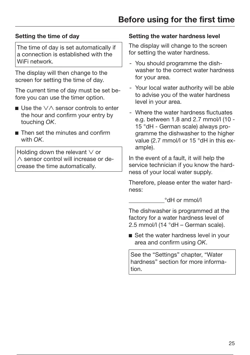for setting the water hardness.