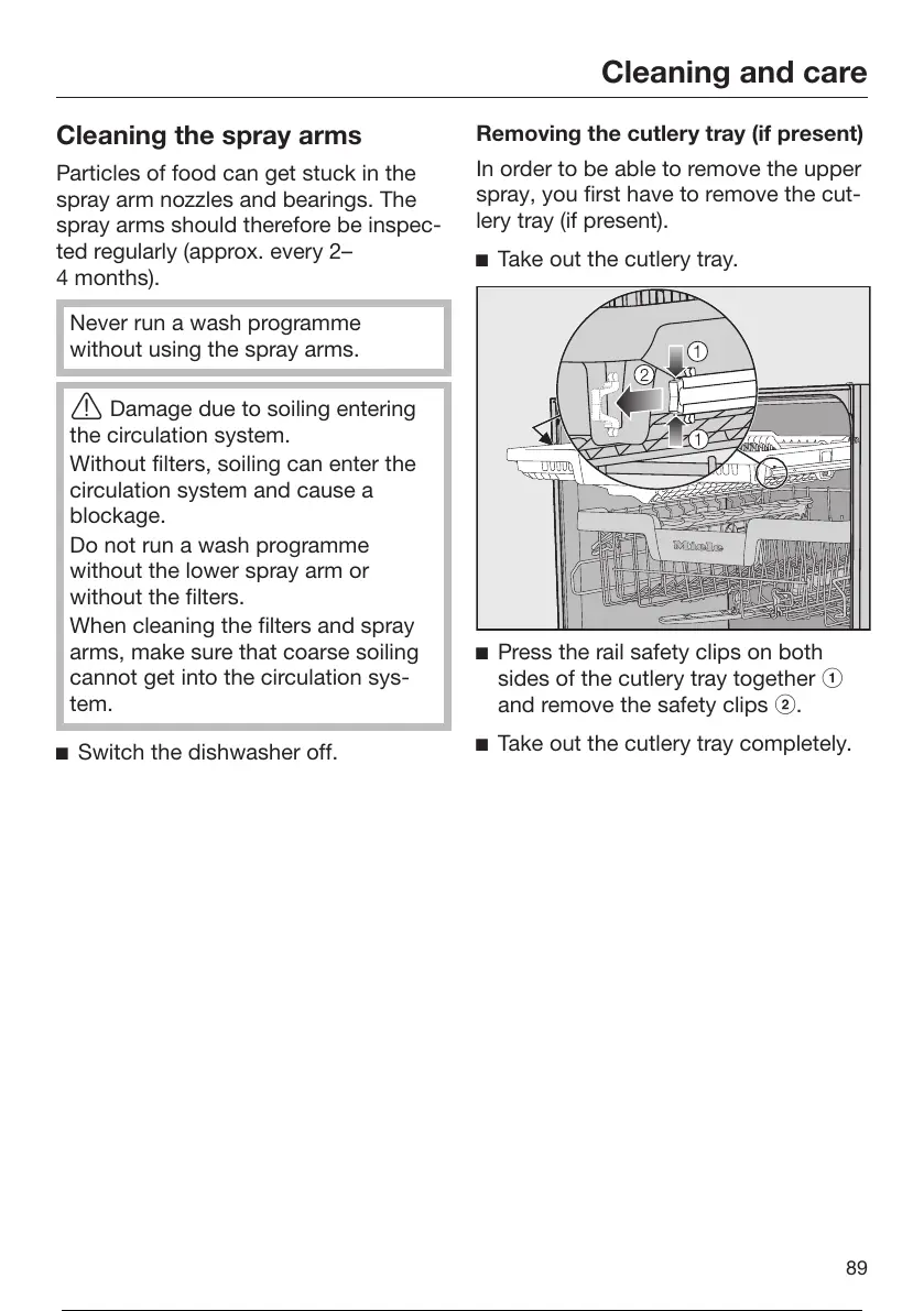 spray arms should therefore be inspec-