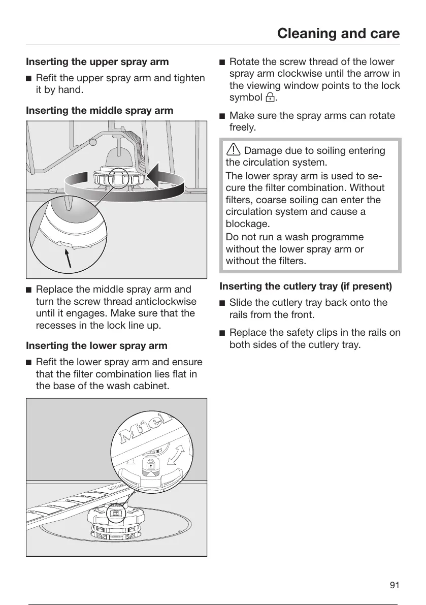 Refit the lower spray arm and ensure
