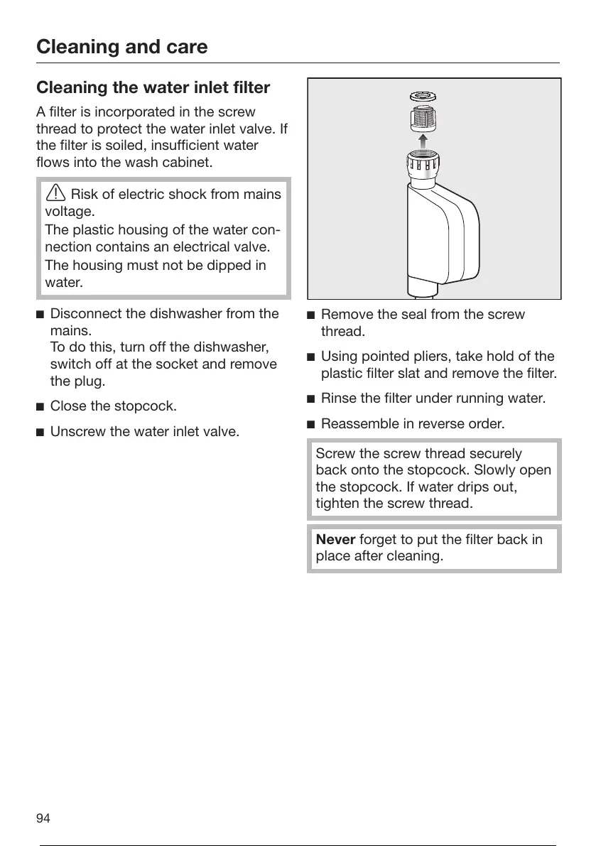 Cleaning the water inlet filter