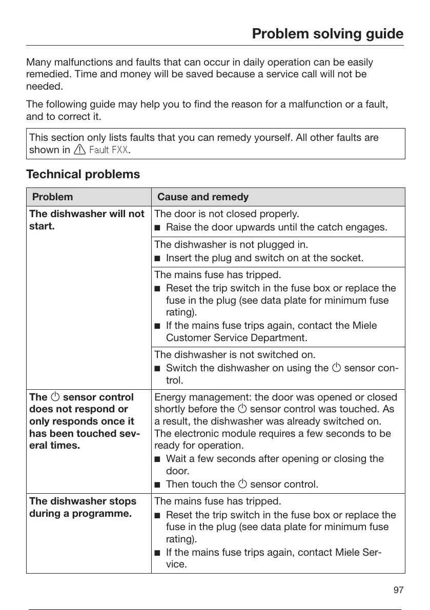 If the mains fuse trips again, contact Miele Ser-