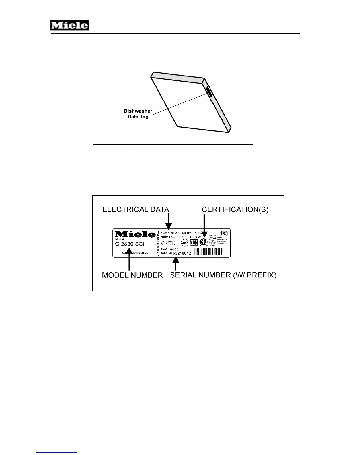 Miele G1000 - Data Tag - Information; Data Tag - Location; Model Numbering
