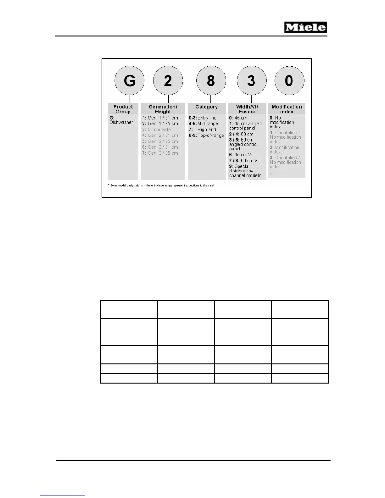 Miele G1000 - Figure 1-9: Model Numbering; Mode Numbering - Overview of USA Model Numbers