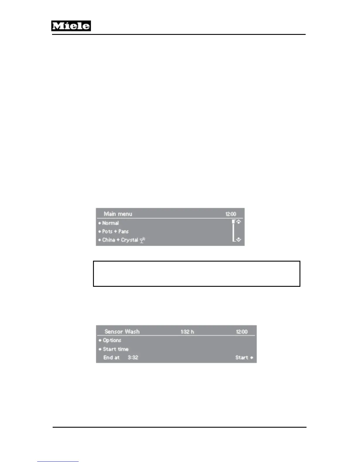 3. Turn on the dishwasher. The main menu shows in the display (Figure 3-5). If the
