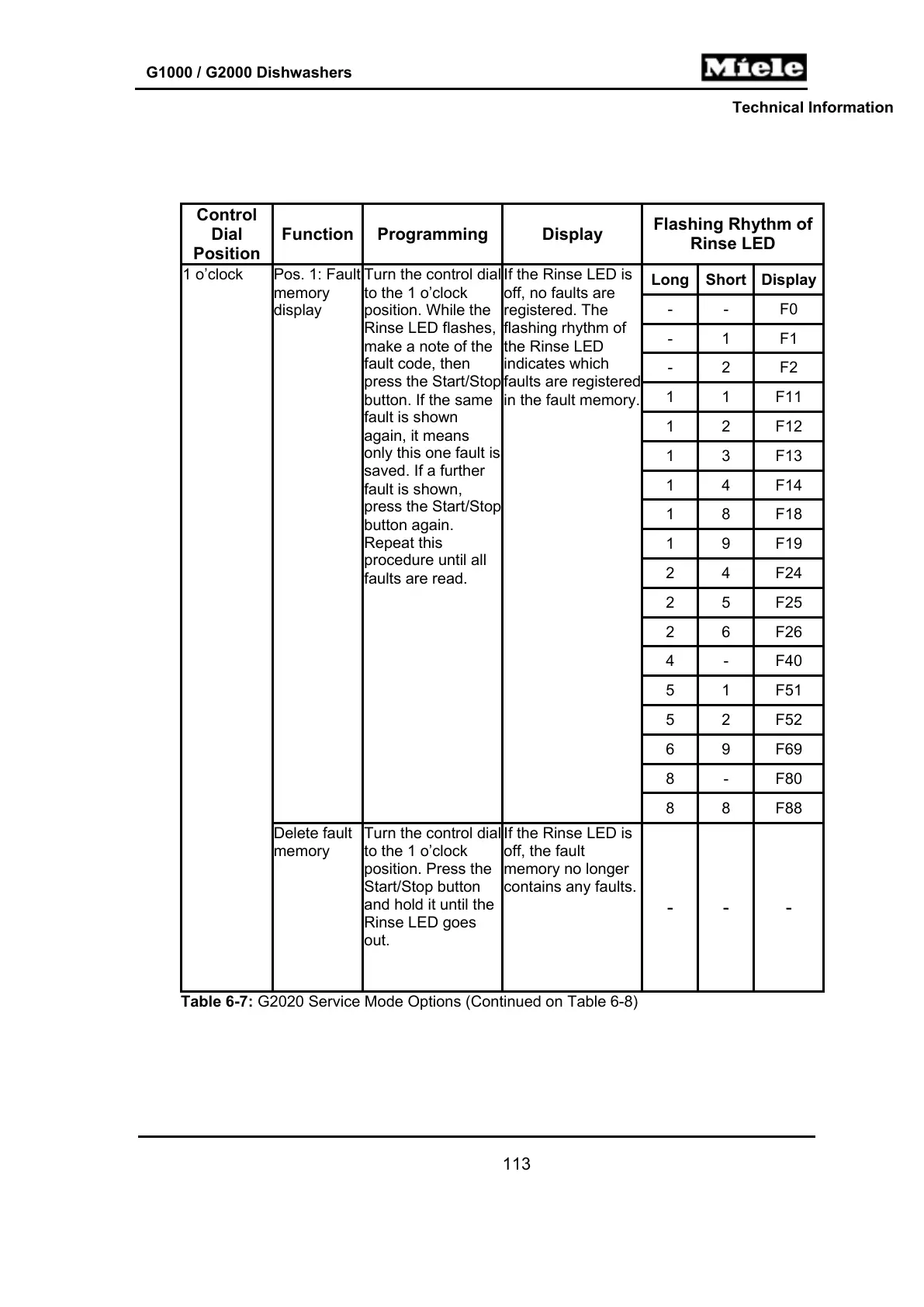 Table 6-7: G2020 Service Mode Options (Continued on Table 6-8)