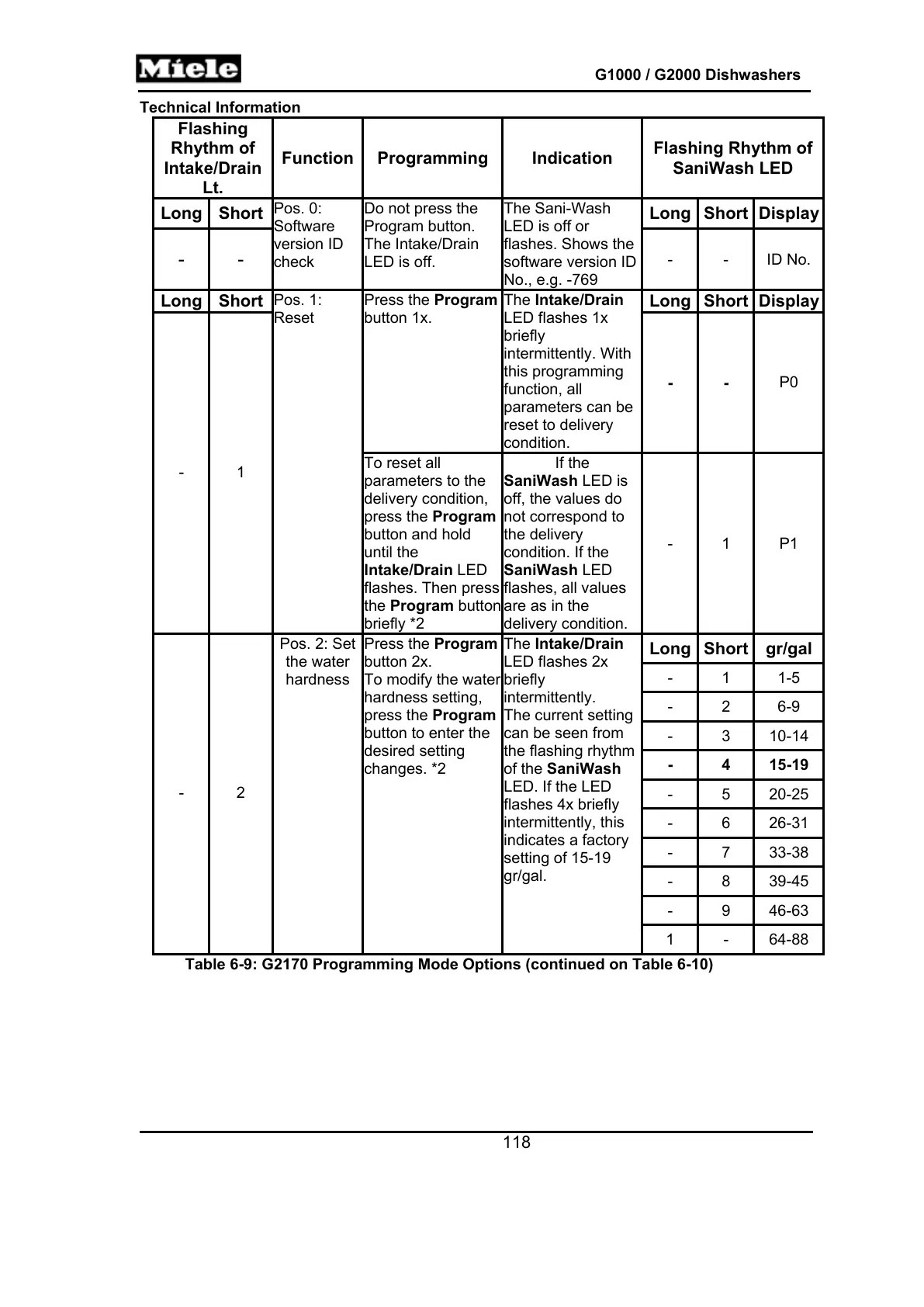 Table 6-9: G2170 Programming Mode Options (continued on Table 6-10)