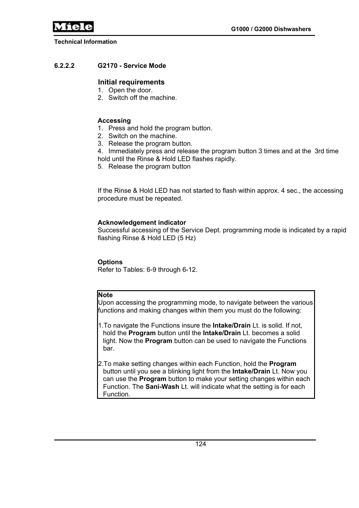 If the Rinse & Hold LED has not started to flash within approx. 4 sec., the accessing